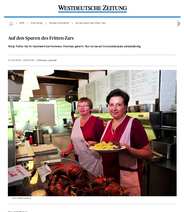 Mein Name ist Alicja Trefon. Vor über 15 Jahren habe ich einen kleinen Imbiss eröffnet – mit dem Traum, meinen Gästen ehrliche, hausgemachte Küche zu bieten. Doch meine Geschichte beginnt noch früher: Schon mehr als zehn Jahre lang habe ich bei Wilfrieds Grill in Oedt gearbeitet. Dort habe ich die Rezepte kennengelernt, die Generationen begeistert haben.